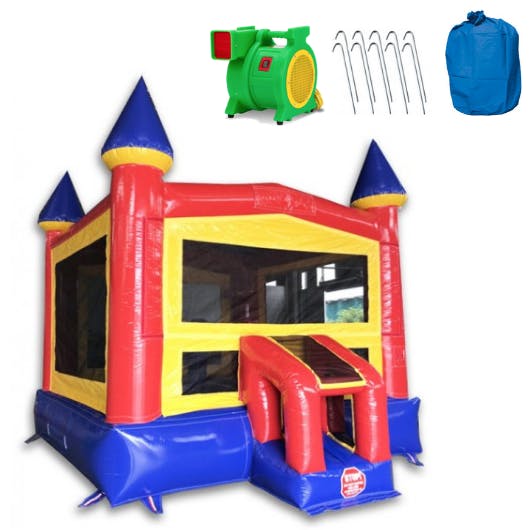 The Castle Commercial Bounce House is really simple to use, inflates in several minutes, and is a popular unit for your home or to use as a rental.